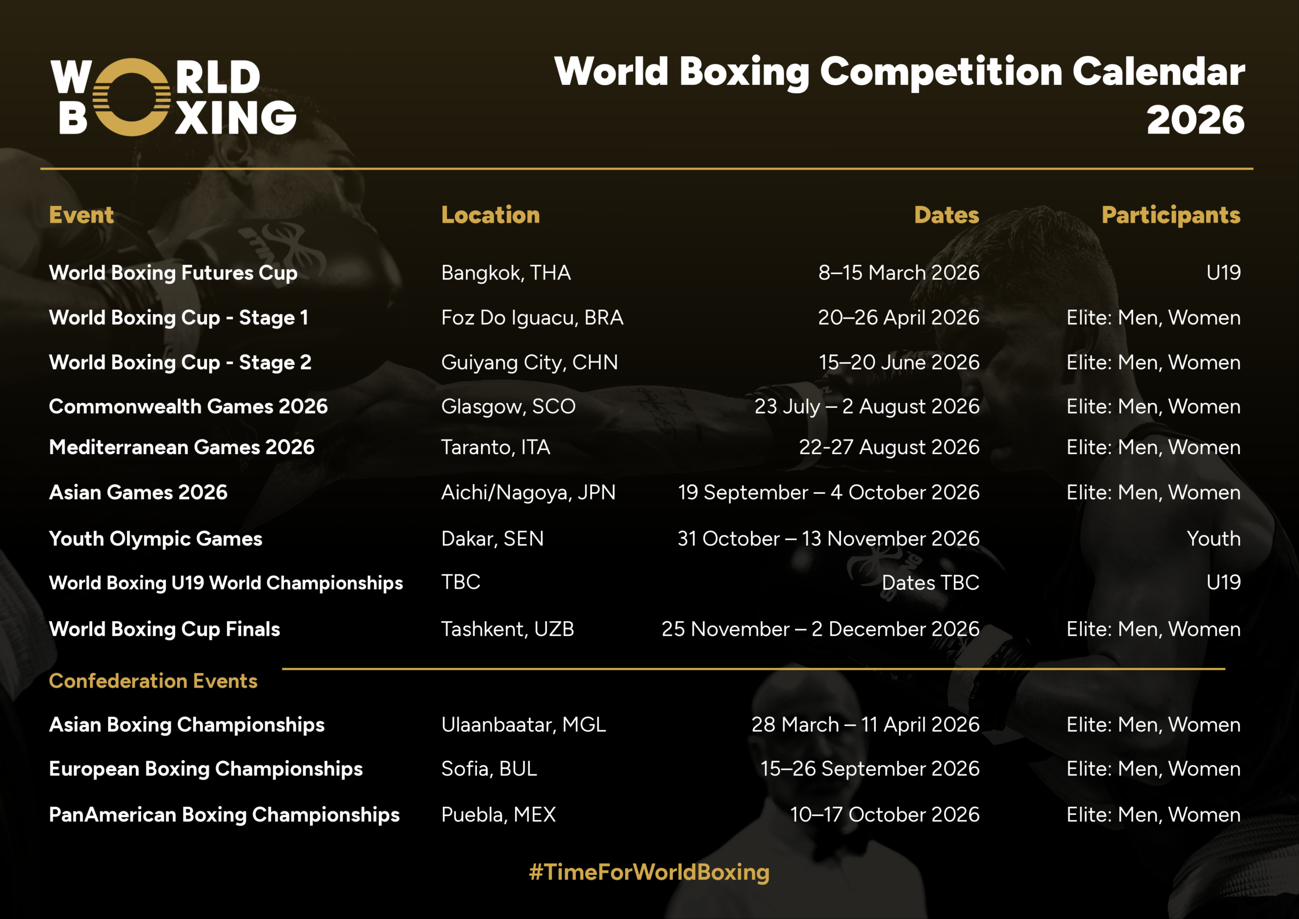 World Boxing’s full competition calendar for 2026 can be viewed HERE.